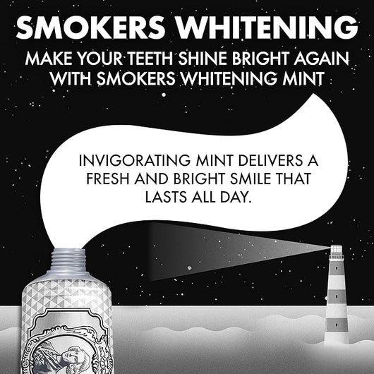 • تركيبة مخصصة للمدخنين: صُمم خصيصًا للتعامل مع آثار التدخين على الأسنان، بما في ذلك التصبغات والروائح غير المستحبة.