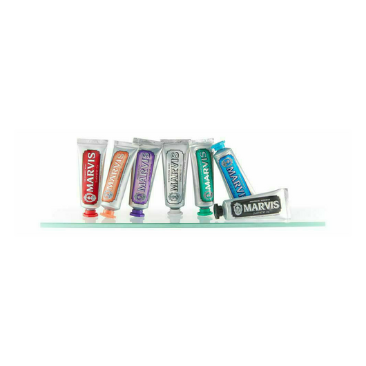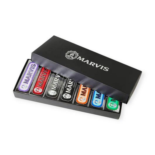 مجموعة معجون الأسنان الفاخرة من مارفيس – 7 نكهات ليست مجرد عناية بالفم، بل تجربة حسية متكاملة تمزج بين الجودة، الأناقة، والنكهات الفريدة. كل أنبوب بحجم 25 مل، يمنحك إحساسًا متجددًا بالنظافة والانتعاش. صُنعت التركيبات بدقة باستخدام مكونات عالية الجودة لتمنحك حماية مثالية للأسنان ونفسًا منعشًا يدوم طويلًا، مع لمسات من النعناع، الزهور، والتوابل.