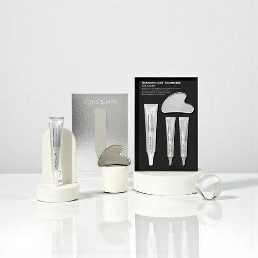 امنحي عينيكِ إشراقة متجددة وحيوية فائقة مع مجموعة كريم العين بحمض الترانيكساميك والجلوتاثيون من ماري آند ماي، المصممة خصيصاً للعناية بالبشرة الرقيقة حول العينين. تجمع هذه المجموعة بين قوة حمض الترانيكساميك الفعال في الحد من فرط التصبغ والهالات السوداء، والجلوتاثيون المعروف بخصائصه في تفتيح البشرة وتعزيز إشراقتها، بالإضافة إلى النياسيناميد وفيتامين C لتحسين مرونة البشرة وإشراقها.