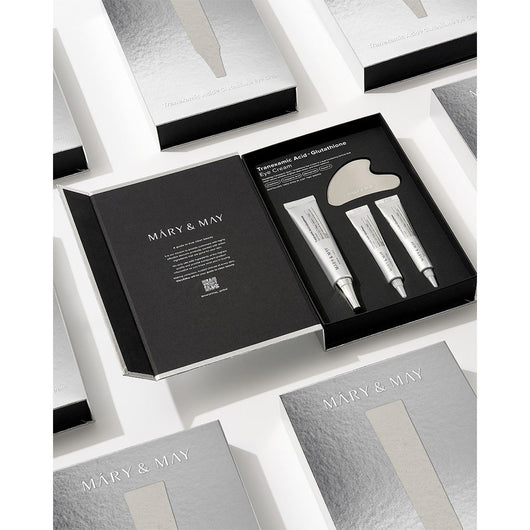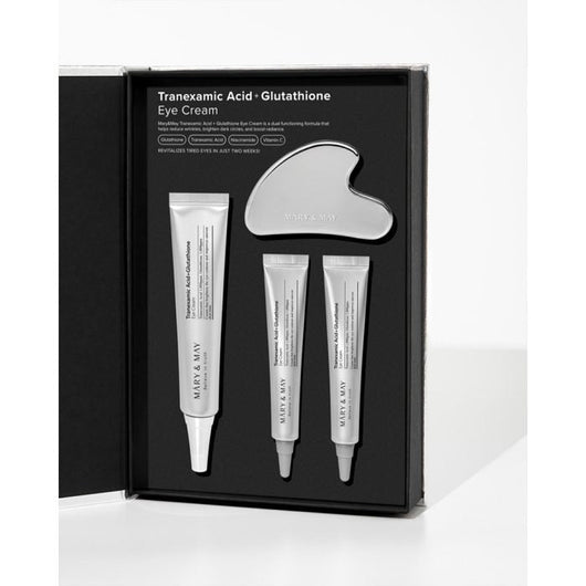 تمنحكِ مجموعة كريم العين بحمض الترانيكساميك والجلوتاثيون من ماري آند ماي حلاً شاملاً لمشاكل منطقة العين بفضل تركيبتها الفعالة وأداتها المبتكرة، حيث تعمل على تفتيح الهالات السوداء، تقليل الانتفاخ، وتحسين إشراقة البشرة ومرونتها. مع الاستخدام المنتظم، ستحصلين على منطقة عين أكثر إشراقاً وراحةً وشباباً لتكملي إطلالتكِ بثقة وحيوية.