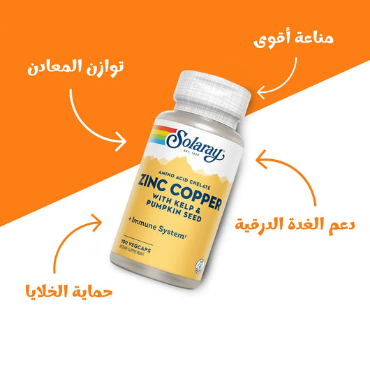 مكمل غذائي لدعم الجهاز المناعي بالزنك والنحاس مع عشب البحر وبذور اليقطين من سولاراي – 100كبسولة