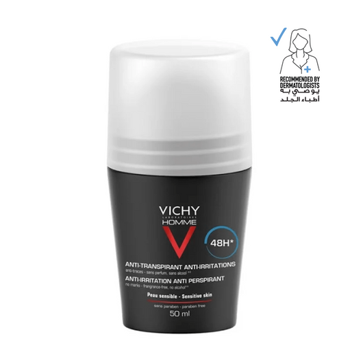 مزيل عرق للرجال للبشرة الحساسة 48 ساعة رول من فيشي هو مزيل عرق يجمع بين الفعالية العالية ضد التعرق والعناية الفائقة بالبشرة الحساسة. تركيبة مبتكرة خالية من العطور والمواد المهيّجة، تمنحك حماية موثوقة وراحة تامة، دون أي آثار مزعجة على البشرة أو الملابس. اختيار مثالي للرجال الباحثين عن حماية نظيفة تدوم طوال اليوم.