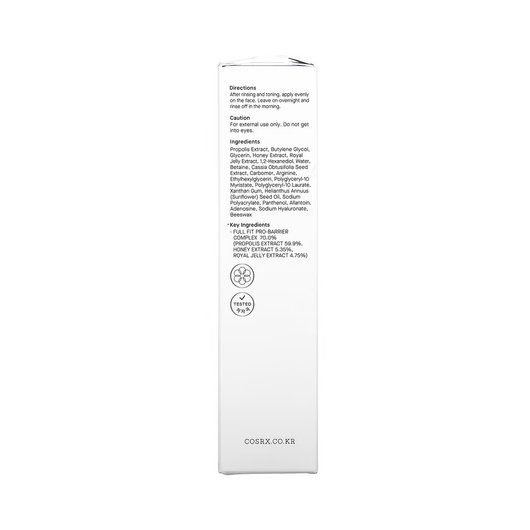 يساعد مستخلص البروبوليس ، وهو مكون طبيعي مضاد للبكتيريا ومضاد للالتهابات ، في علاج البشرة المجهدة وتقليل الاحمرار. يشعر هذا القناع الليلي من النوع الجل بالانتعاش على البشرة ، وهو جيد لتهدئة حروق الشمس أو تسخين الجلد. كما أن المرطب خفيف الوزن لدرجة أنه يتم امتصاصه في الجلد بسرعة كبيرة ، مما يجعل البشرة رطبة وناعمة. يأتي القناع الليلي في أنبوب لمزيد من الراحة ولمنع تعرض البكتيريا والهوا