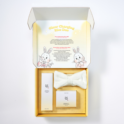 يجمع Glow Charging Rice Duo بين فوائد الأرز القوية والمكونات التآزرية مثل العسل والكاولين . تشتمل هذه المجموعة الحصرية على حليب الأرز المتوهج وقناع الأرز المطحون والعسل وعصابة الرأس لتنظيف الأرنب من BOJ Moon. تعمل هذه المنتجات معًا على تنشيط وترطيب بشرتك والتحكم في الدهون وتعزيز إشراقها. مستوحاة من قرون من الحكمة الكورية للعناية بالبشرة، تستخدم شركة Beauty of Joseon الخصائص الغذائية للأرز، وهو عنصر محترم في علاجات التجميل التقليدية.