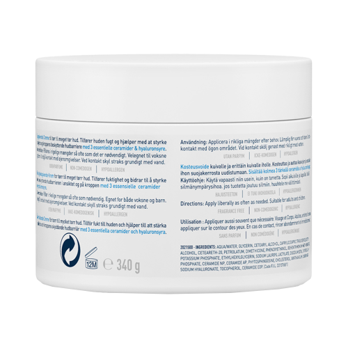 يحتوي على ثلاثة سيراميدات أساسية وحمض الهيالورونيك ليرطب البشرة ترطيبا عميقا ويرمم حاجز حمايتها.