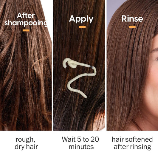 يرطب الشعر بعمق ويمنع فقدان الرطوبة، ليمنحك خصلات أكثر نعومة ولمعانًا.