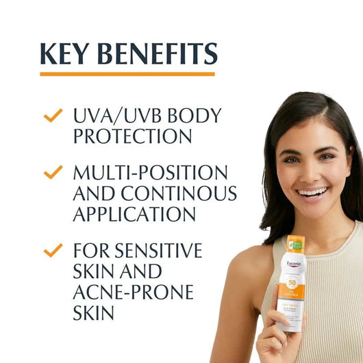 تمتع ببشرة صحية ومحمية مع بخاخ واقي شمس دراي تاتش بعامل حماية SPF 50+ من يوسيرين، الذي يوفر لك حماية متطورة ضد الأشعة الضارة دون القلق من اللمعان أو التعرق. اجعل هذا الواقي جزءًا من روتينك اليومي للتمتع ببشرة ناعمة ومحمية طوال اليوم!
