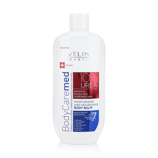 احصلي على ترطيب عميق وراحة طويلة الأمد لبشرتك الحساسة والجافة مع بلسم الجسم المغذي من إيفلين كوزمتيكس. يحتوي هذا البلسم على تركيبة متقدمة بتركيز 10% من اليوريا، مما يجعله مثاليًا للبشرة الخشنة والمجهدة. يعمل البلسم على تهدئة وترطيب البشرة بشكل فوري، ويعيد لها نعومتها ومرونتها. بفضل المكونات السويسرية الفعّالة، يعزز هذا المنتج حاجز البشرة الطبيعي ويحميها من العوامل البيئية القاسية.