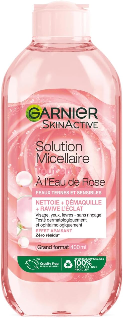 امنحي بشرتك تنظيفًا عميقًا ومنعشًا مع ماء ميسيلار من غارنييه بخلاصة ماء الورد. يعمل هذا المنتج كمنظف قوي يزيل الشوائب والمكياج بلطف، بينما يترك البشرة مشرقة ونقية دون الحاجة إلى فرك أو شطف. مناسب للبشرة الباهتة والحساسة، حيث يمنحها إشراقة طبيعية ولمعانًا صحيًا.
