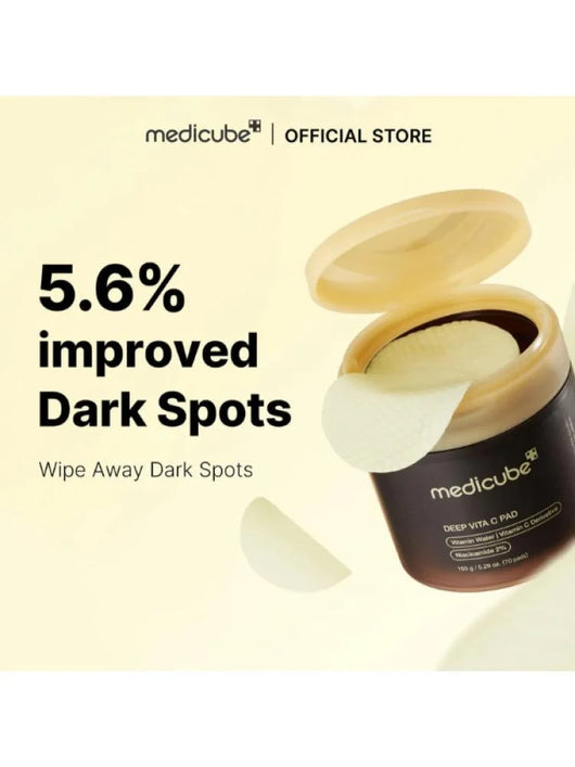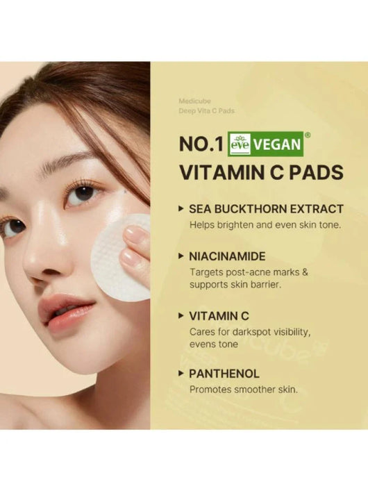 وسائد فيتامين سي العميقة لتفتيح البشرة من ميديكيوب هي وسائد غنية بمزيج فيتامين سي، النياسيناميد، ومياه الفيتامينات المصممة لتفتيح البشرة، تحسين إشراقتها، وتقليل التصبغات والبقع الداكنة. توفر هذه الوسائد تقشيرًا لطيفًا، إزالة خلايا الجلد الميتة، وترطيبًا فائقًا، مما يمنح البشرة مظهرًا صحيًا ومشرقًا.