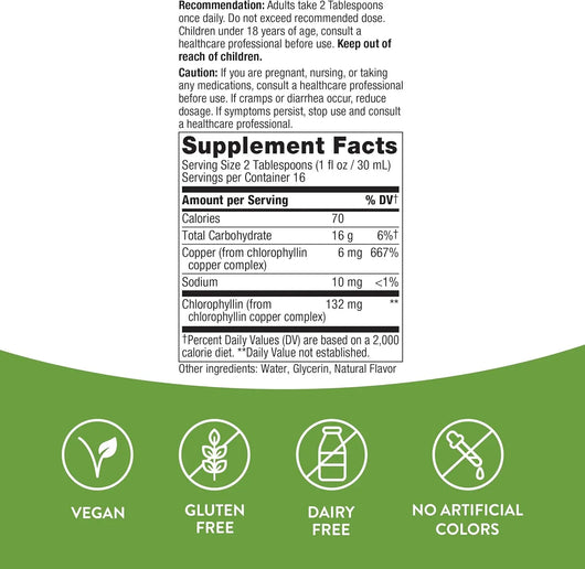• النحاس (من مركب كلوروفيل النحاس) - 6 مجم (667% من الاحتياج اليومي)