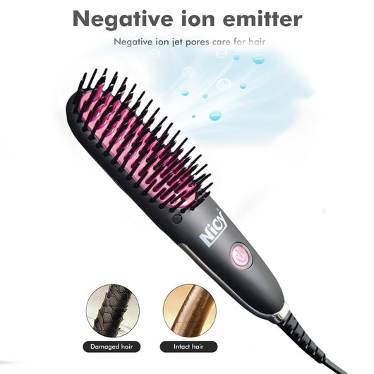 مصفف عملي بمشط حراري يجفف ويصفف الشعر بسهولة بدون ان يتلف الشعر بسبب تقنية النانومتر الموجودة في مشط الجهاز، يحتوي على مستويين للحراره المستوى الأول 180 درجة والمستوى الثاني 210 درجه، يتميز بنظام امني تلقائي حيث انه يتوقف تلقائيا عن التشغيل بعد ساعه من الاستخدام.