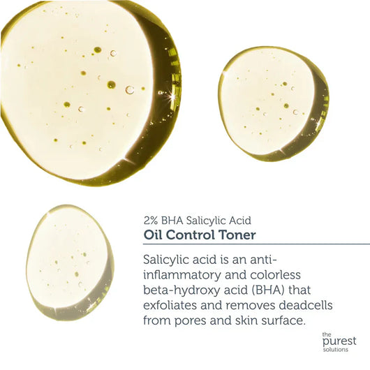 احصل على بشرة نقية وصحية مع تونر التحكم في الزيوت بحمض الساليسيليك 2% BHA من The Purest Solutions.