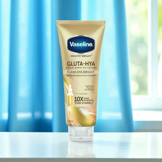 لوشن فازلين Gluta-Hya Flawless Bright هو تركيبة متقدمة مصممة لتفتيح البشرة وترطيبها بعمق، مع حماية فعالة من أشعة الشمس. يحتوي على GlutaGlow™ (أقوى 10 مرات من فيتامين C*)، بالإضافة إلى حمض الهيالورونيك وبرو-ريتينول، مما يجعله مثاليًا لتقليل التصبغات ومنح البشرة إشراقة صحية وتوحيد لونها مع كل استخدام.